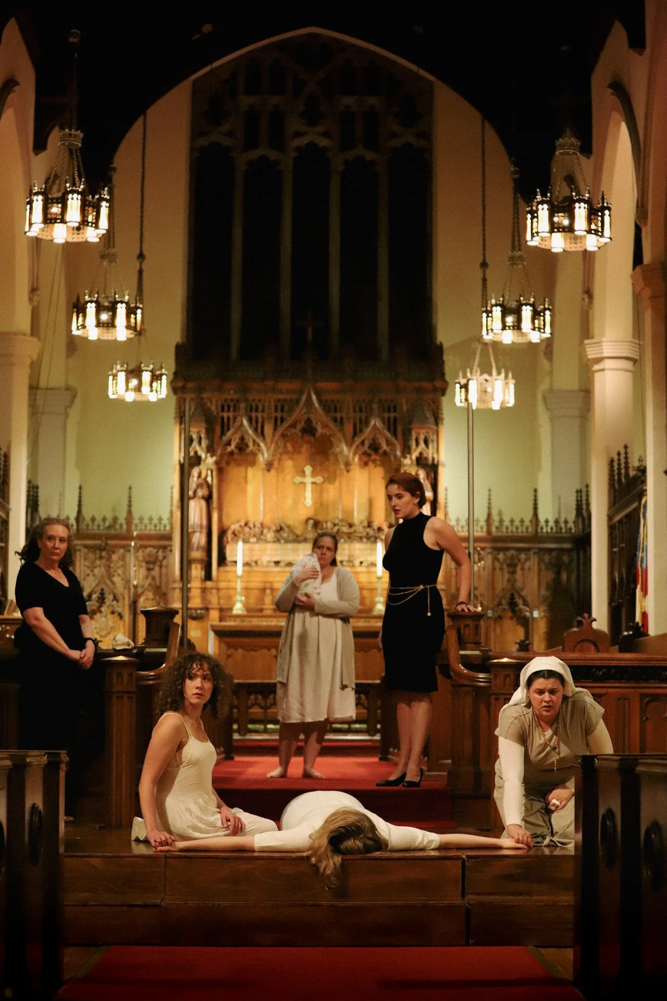 Measure for Measure is often called a problem play: one of Shakespeare’s works that, from a theatre-maker’s perspective, resembles a twisted piece of glass. Fragile, curious, hard to make…most directors, when attempting this piece, try to massage the twist out of it, and de-problematize the play, making it easier on the eyes. We went the other way, and kept twisting until it broke, reveling in the beautiful shards that remain, and adding our own glue to make the stained glass mosaic you’re seeing tonight.